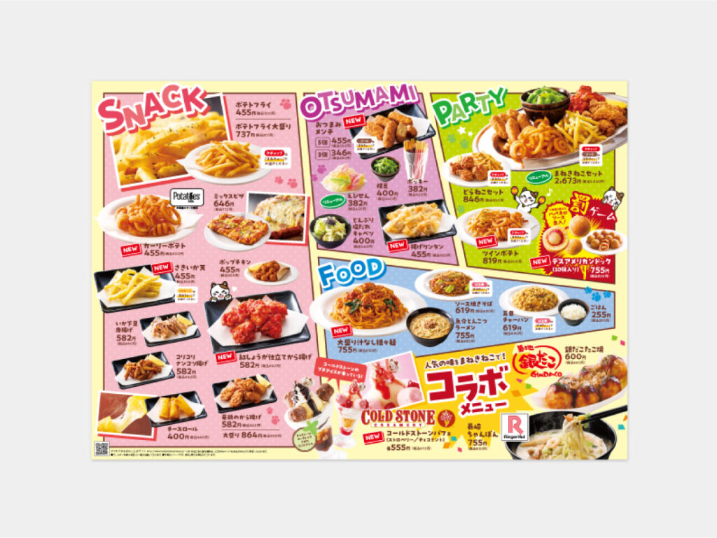 カラオケまねきねこ様のグランドメニューのリニューアルを手掛けました。